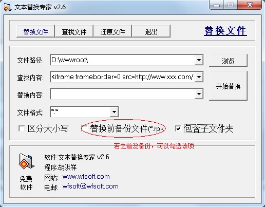 在清理挂马之前,请先将您的站点备份,避免被误删除。打开文本替换专家,选择网站目录。