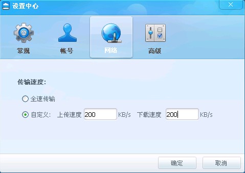 选择“网络”,将上行和下行速度都设置为200(在您本地电脑上可以不用设置此选项),以免备份流量太大影响网站的正常访问。