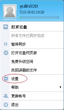 右键点击云盘图标——设置: