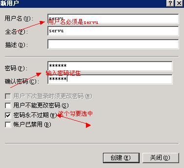 处理办法:点我的电脑右键管理》本地用户和组》用户,查看SERVU账户是否存在,如果存在请直接修改一个密码记住备后面使用;如果没有就新建立一个。