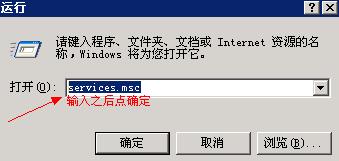 远程登录服务器,点服务器开始》运行》输入services.msc点确定打开服务管理,