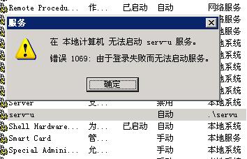 " 找到SERVU服务启动看详细错误提示。常见的有两种错误,一种是登录失败下面详细讲;一种是缺少文件,如果不是人为破坏基本上不会出现。