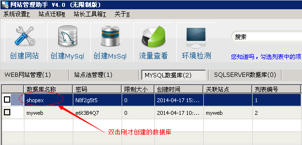 1.打开我司网站管理助手,点击“创建mysql”