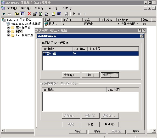 windows下关闭或取消主机名空的站点