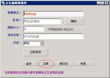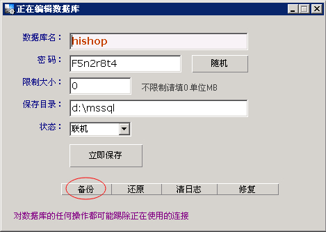 网站管理助手创建、还原、备份mssql数据库 |