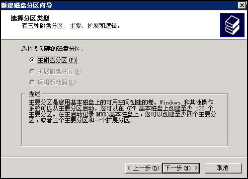 保持默认“主磁盘分区”,如图: