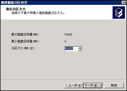 分区大小保持默认,若要分成几个区,可以设置小于默认值,以便待会再分新区。如图: