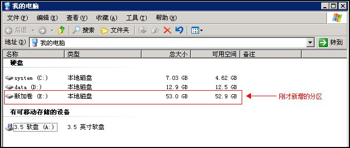 点击“我的电脑”,也可以看到刚建立好的分区,如图: