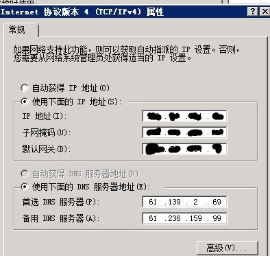 1.登录远程服务器,打开网络属性(桌面上右键网上邻居--属性--右键本地连接--属性),如下