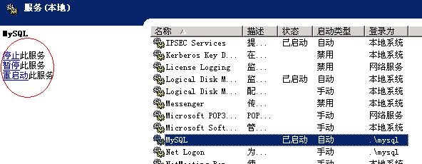 点击开始--运行,输入services.msc ,在弹出的服务窗口中,找到mysql服务,直接点击左侧对应的就可以了。