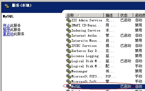如出现以上错误提示,请检查您的网页设置中的mysql信息是否正确,然后检查服务中的“mysql”服务是否启动。