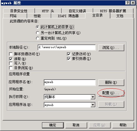 打开网站目录,如D:\wwwroot ,然后找到对应的网站目录,如myweb 右键,点击“属性”,选择“安全”,出现以下窗口: