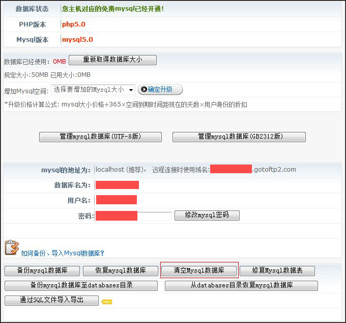 怎样清空网站、mysql数据库、mssql数据库 |