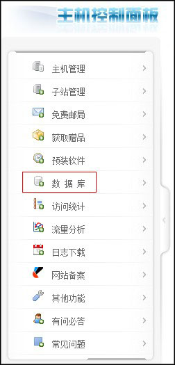 如果是虚拟主机赠送的数据库,直接在我司虚拟主机管理面板,点击左侧的“数据库”,如图: