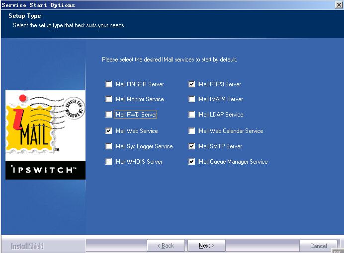 选择要安装的模块,其中上图中的是必须选中,否则不能收发邮件。(如果不了解详细模块功能,可以全选安装)。Next