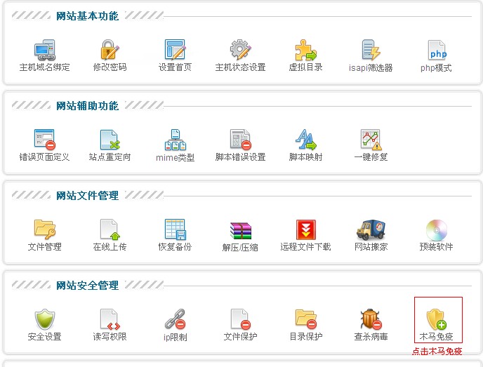 4、在木马免疫中,取消“iframe挂马”和“JavaScript挂马”的勾,然后点“确定提交”重新登录shopex后台,一般就能可视化编辑了。