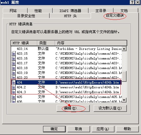 找到HTTP错误,下边对应的404,点击“编辑”